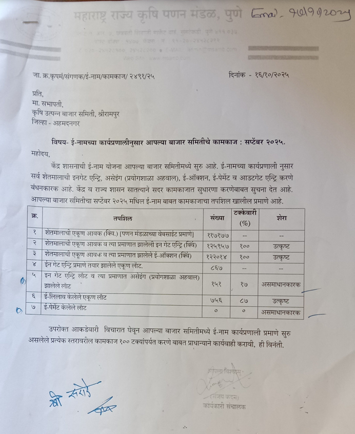 Working of Shrirampur Market Committee according to e-NAM system